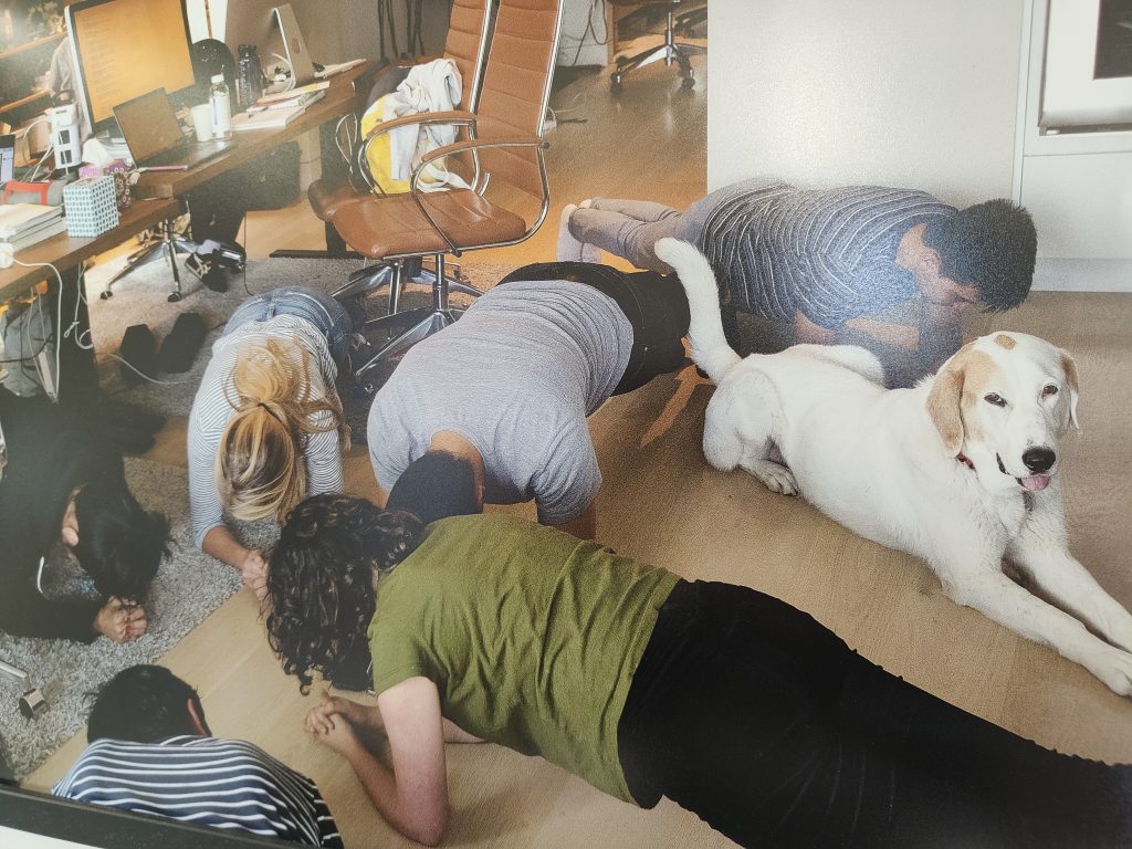 Wild West Tech! San Francisco, California, 2018. Dipendenti d’azienda in planking…